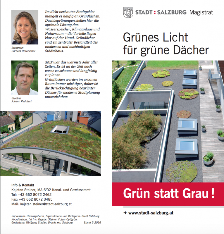 “The advantages of green roofs are obvious,” says Barbara Unterkofler, a member of Salzburg’s City Council. “Green roofs represent the optimal solution and are also a central component of modern and sustainable urban planning,”